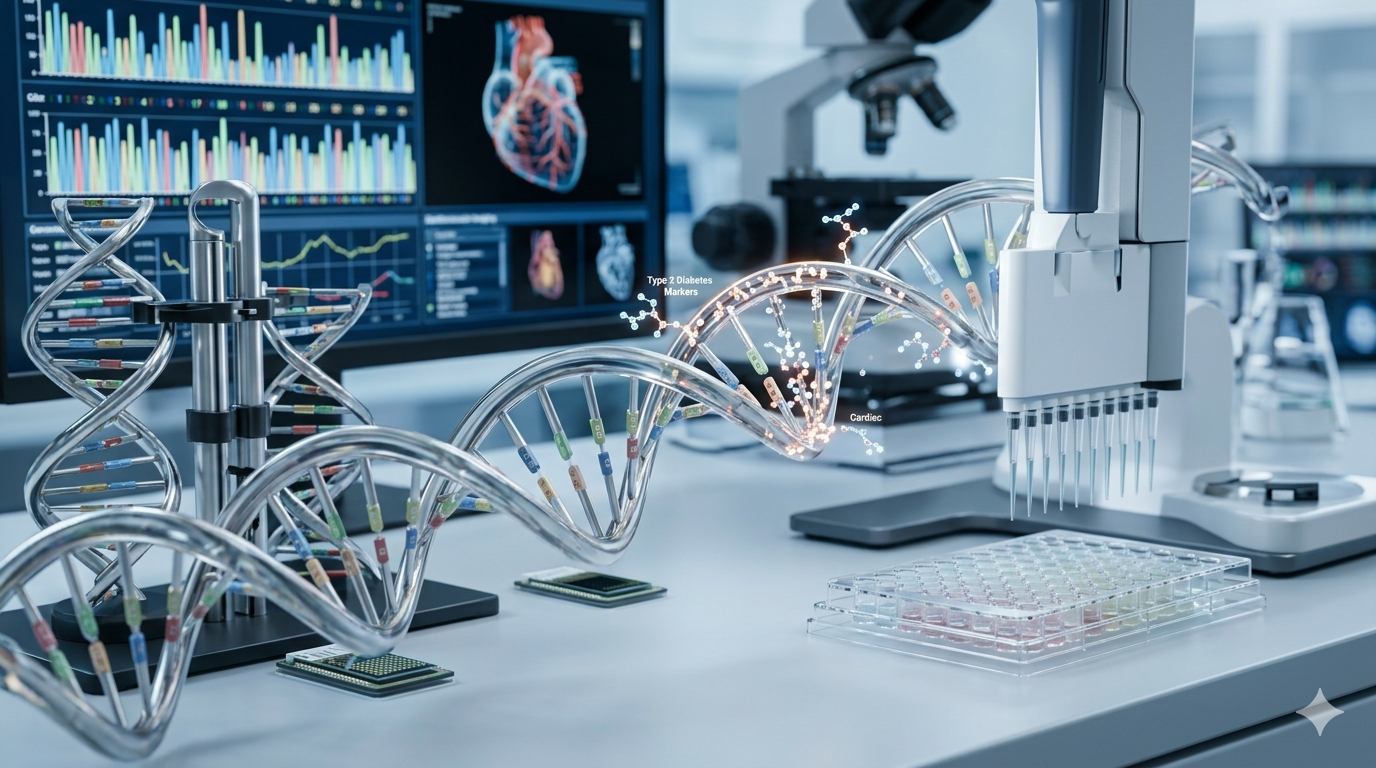 O diabetes mellitus tipo 2 (DT2) configura-se como um dos principais fatores de risco para doenças cardiovasculares (DCV), apresentando uma prevalência global crescente e uma notável heterogeneidade em sua patogênese e prognóstico. De acordo com Kim, Gloyn e Knowles (2021), embora fatores ambientais como dieta e sedentarismo sejam determinantes, a base genética do DT2 é vasta e complexa, envolvendo uma arquitetura poligênica composta por centenas de variantes de risco, predominantemente localizadas em regiões não codificantes do genoma. O progresso nos estudos de associação genômica ampla (GWAS) permitiu a identificação de loci que não apenas conferem risco à doença, mas também oferecem insights cruciais sobre as vias moleculares que conduzem à disfunção das células beta e à resistência à insulina.