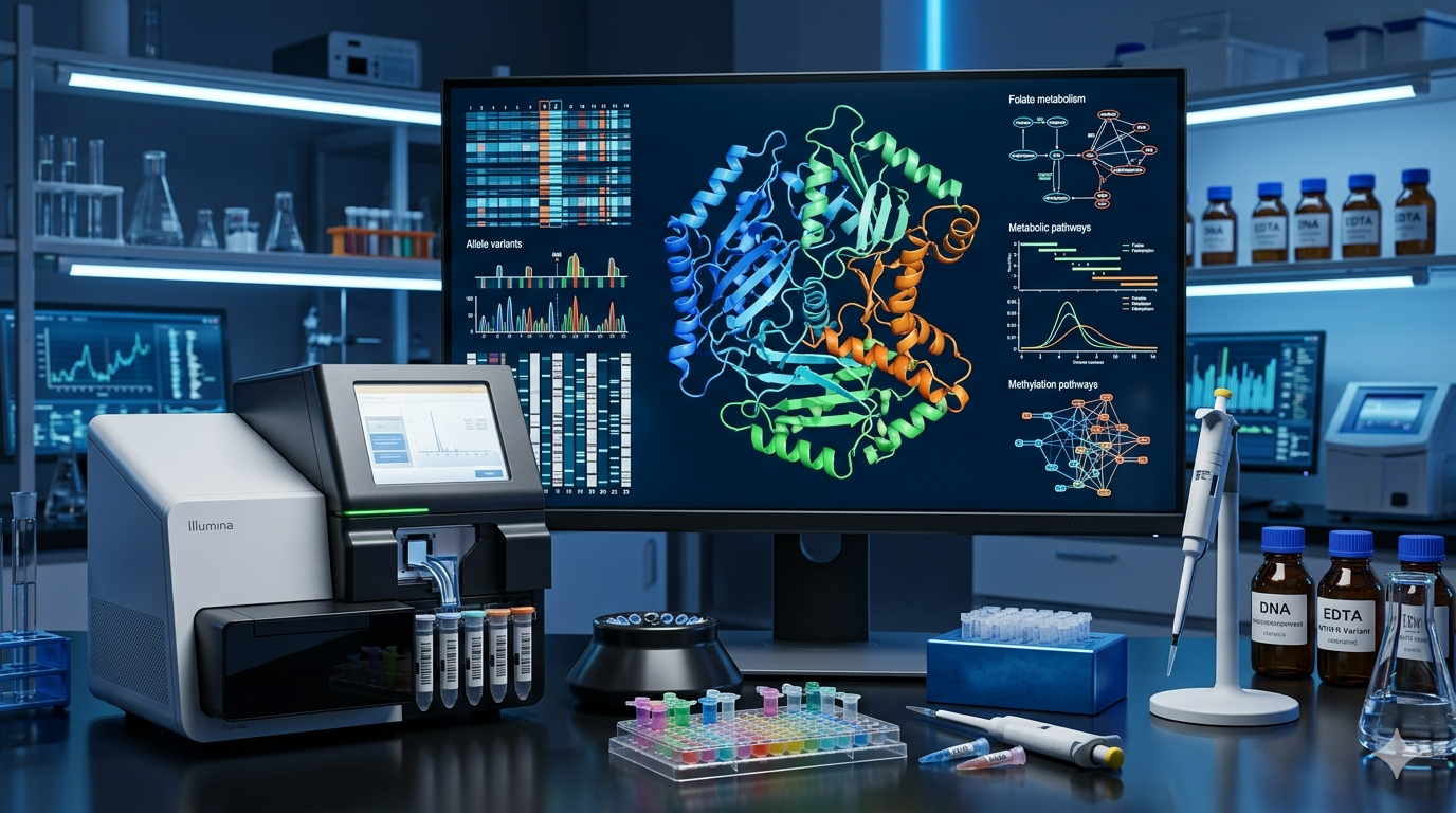 A implementação da Triagem Neonatal Expandida (NBS) permitiu a identificação de recém-nascidos assintomáticos, porém, a confirmação diagnóstica e o manejo clínico exigem a integração de testes moleculares de alta precisão. A análise de painéis de genes específicos por sequenciamento de nova geração (NGS) tornou-se a “pedra angular” para o diagnóstico definitivo, permitindo a identificação de variantes patogênicas raras e novas mutações missense, nonsense ou de splicing nos 11 éxons do gene MTHFR. Além da confirmação diagnóstica, o teste genético facilita o aconselhamento genético familiar e o rastreamento de portadores, sendo fundamental para distinguir a deficiência severa de polimorfismos comuns (como o C677T e A1298C), que, embora reduzam a atividade enzimática, não costumam resultar nas manifestações clínicas graves da deficiência clássica.